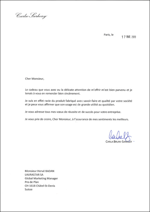 Pismo Carla Sarkozy